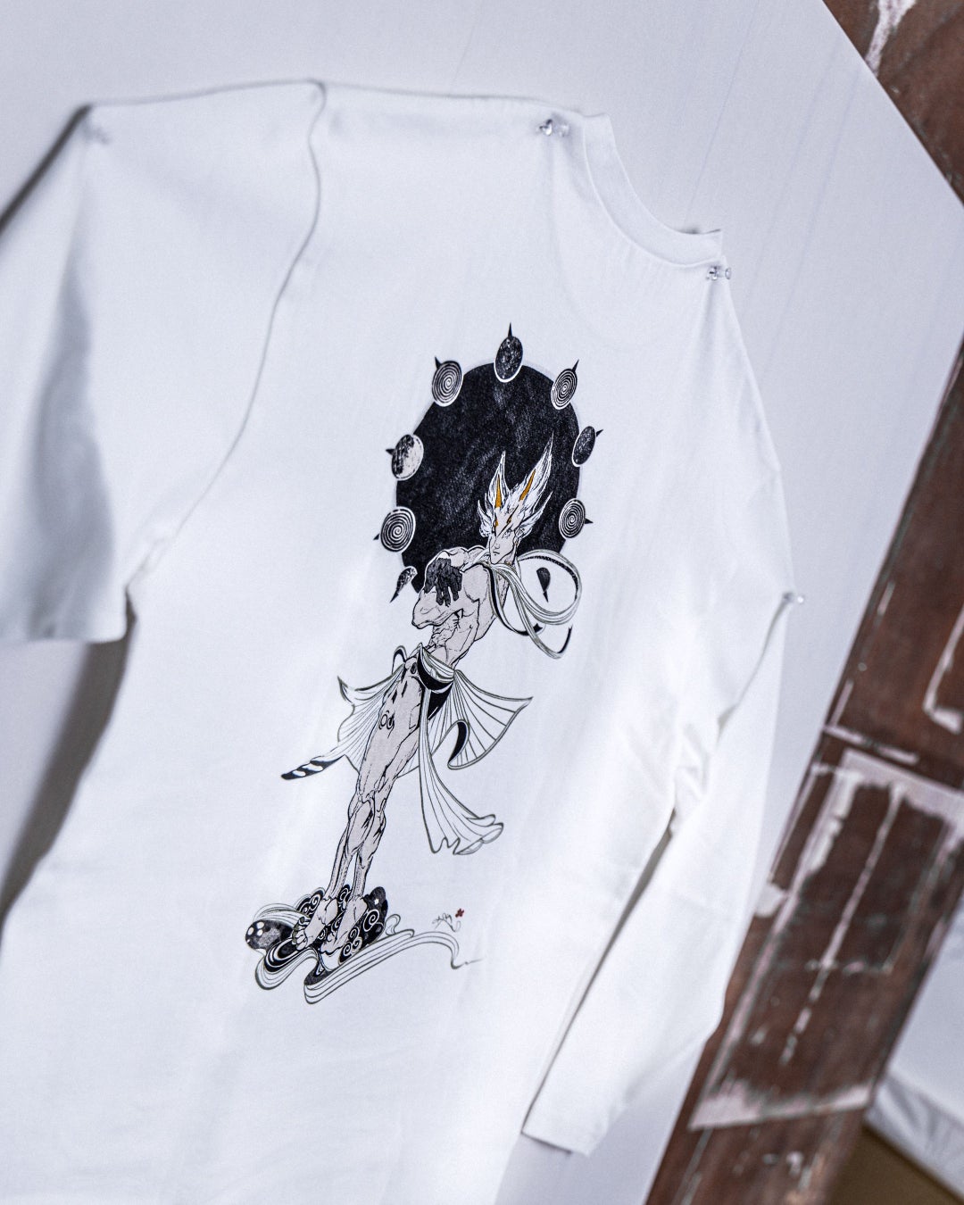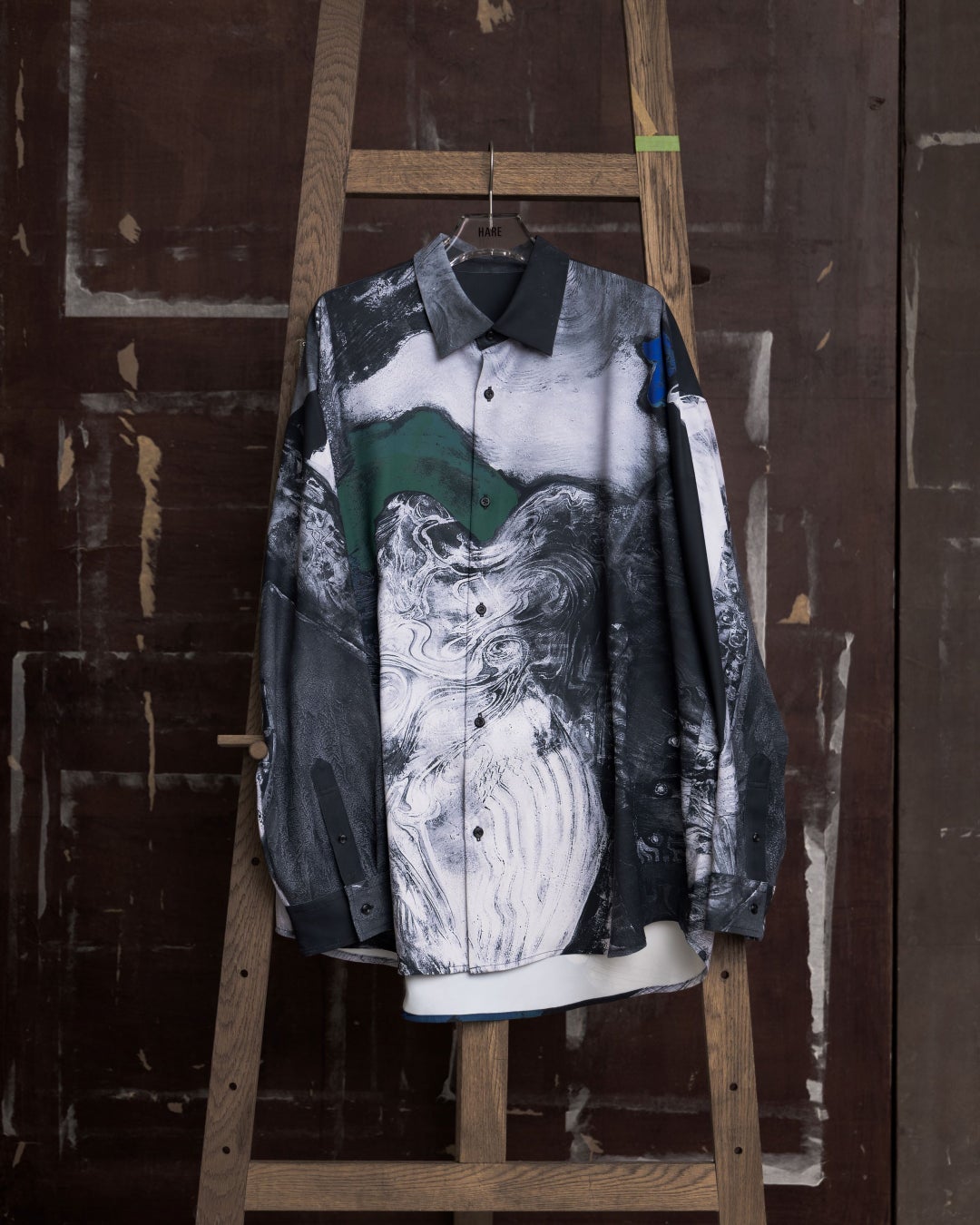 カルチャーやアートが融和した新感覚をシャープに表現するモードブランドであるHARE(ハレ)は、ファッションを通して日本文化を若い世代に伝える企画として、日本画家の川﨑麻央氏とのコラボレーションアイテムを発売いたします。川﨑氏は地元島根の神話をテーマとした作品を多く制作しており、2024年「再興第109回院展」で最高賞に当たる大観賞や、「第79回春の院展」にて外務大臣賞を受賞するなど、稀代の新鋭日本画家としてご活躍されています。今回のコラボレーションは、同氏の作品の中から4作品を選出し、トレンドのピグメント加工を施したプリントスウェットや、HAREで人気の総柄シャツなどファッショナブルなアイテムに落とし込みました。