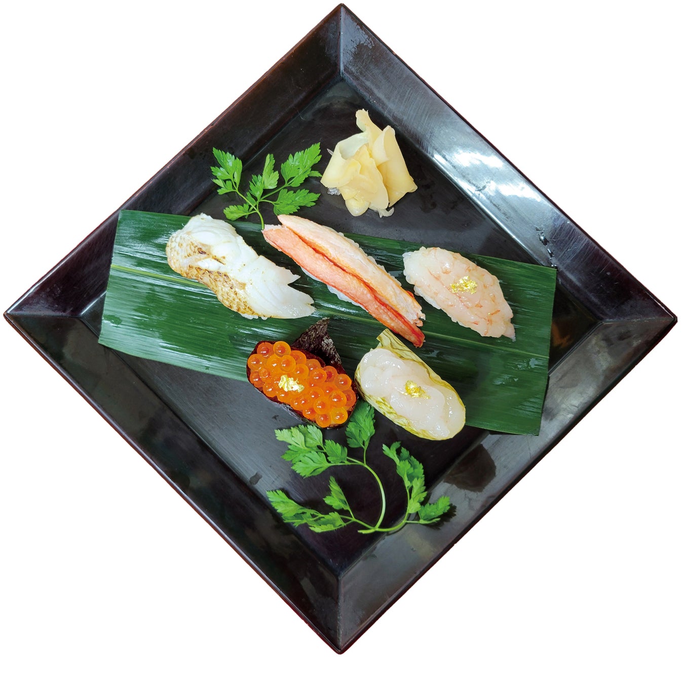 北陸自慢の海の幸、のどぐろ、かに、甘えび、いくら、白えびが楽しめる豪華な握り!