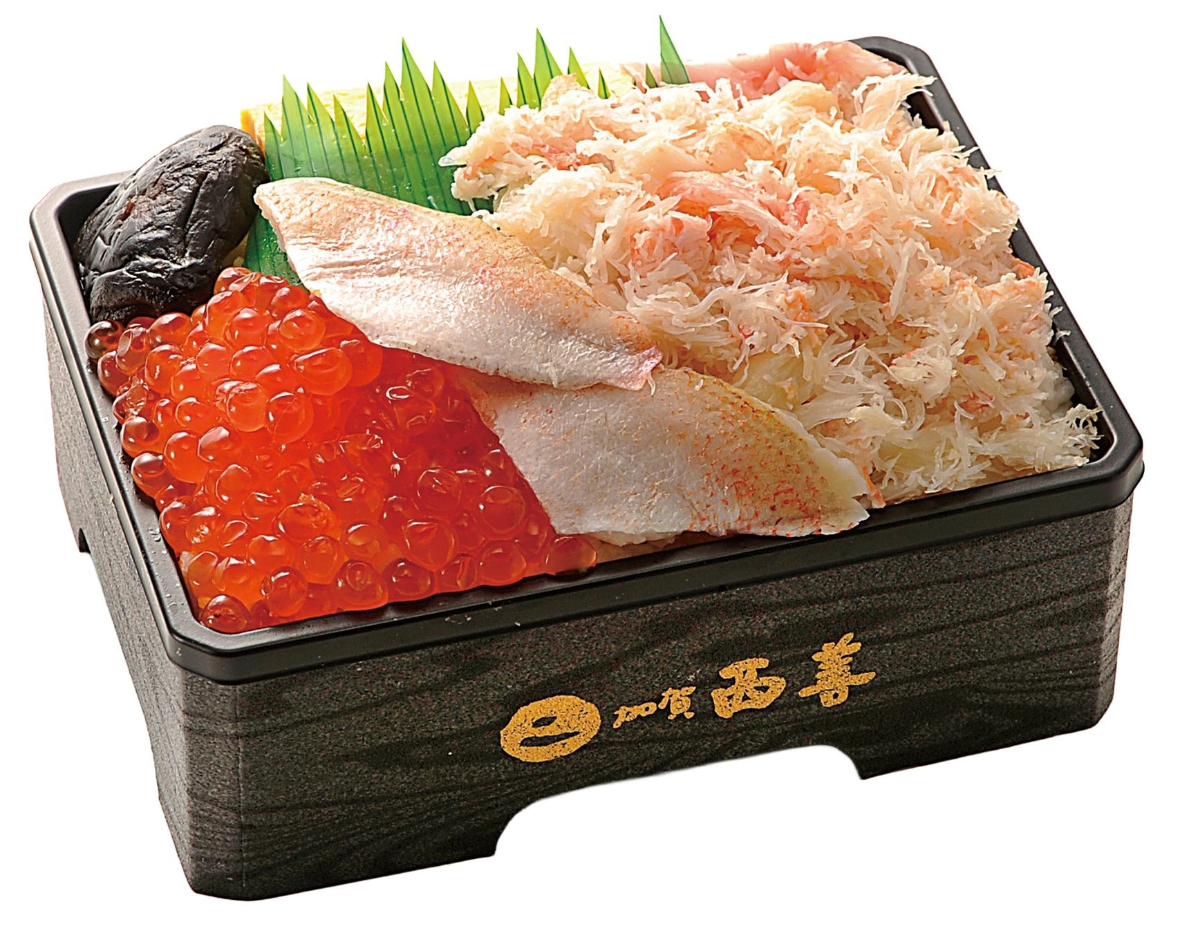 甘えびの押し寿司と、かにといくらも楽しめる豪華な一折。