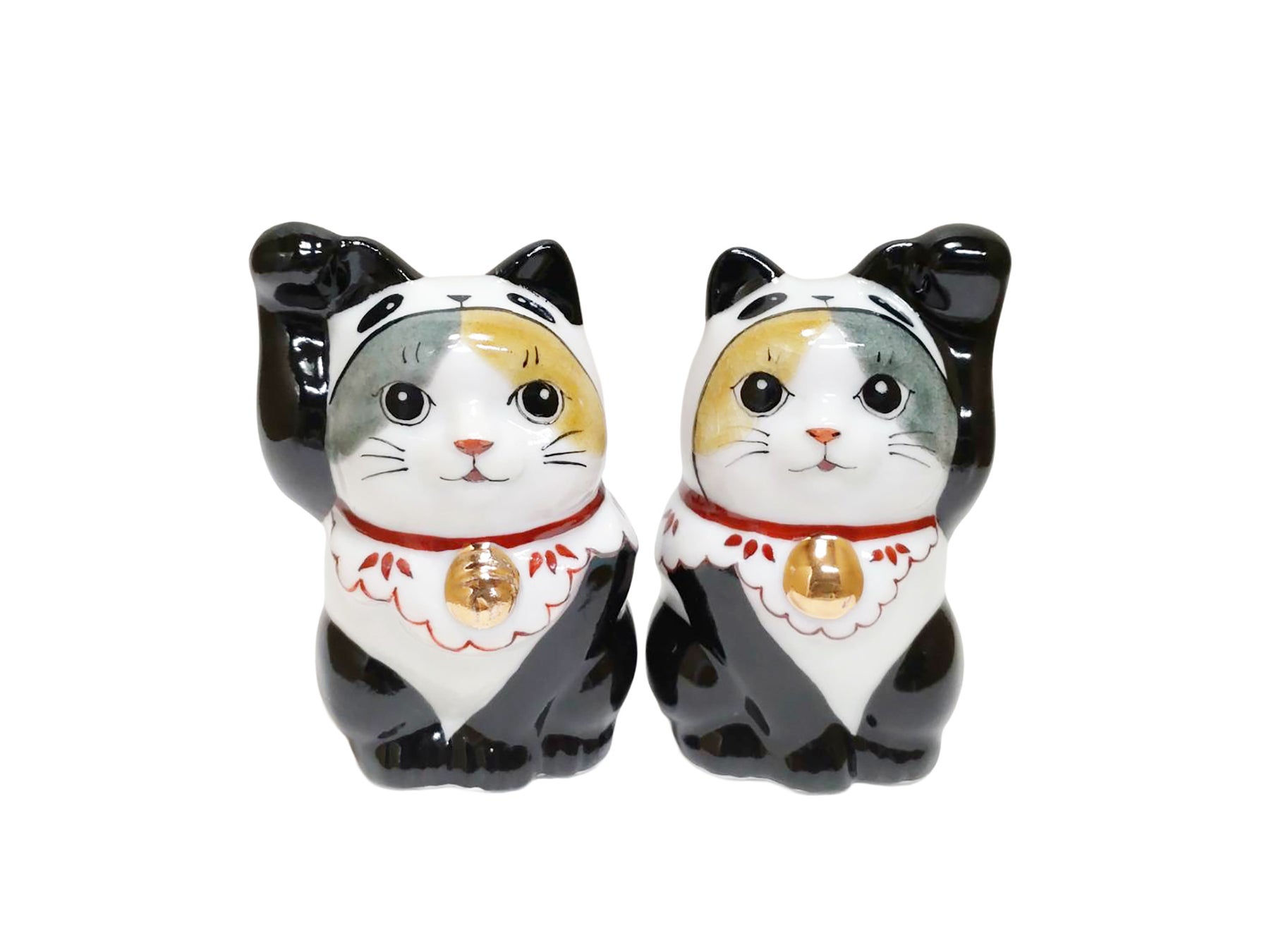 九谷焼招き猫 着ぐるみパンダ(右手挙げ/左手挙げ)(磁器、約縦4×横4.5×高さ7cm、約50g)