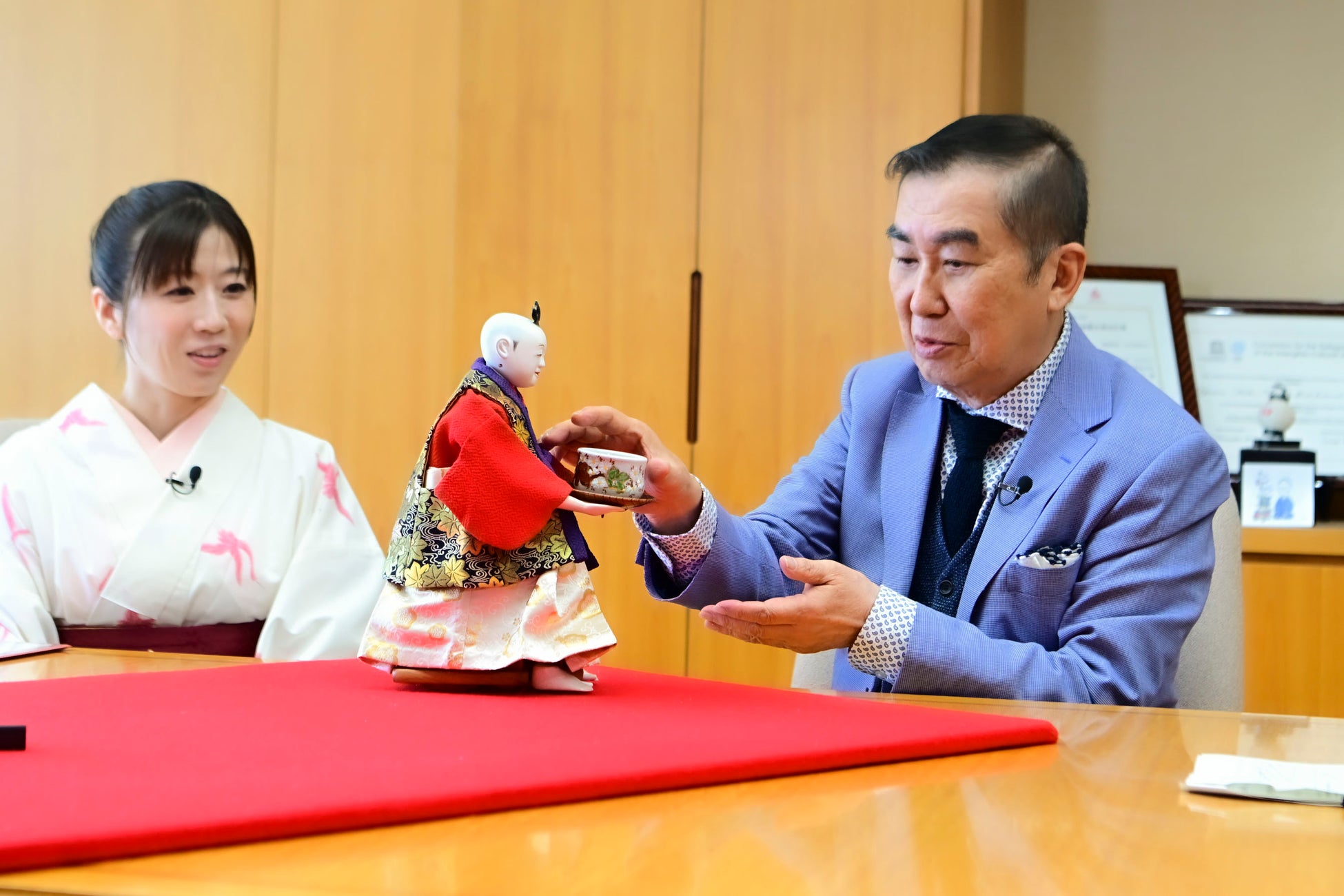 番組後半では、原欣伸市長の市長室を伺い、犬山市の魅力を聞いていきます。1635年から行われ、ユネスコの無形文化財にもなっている「犬山市祭り」の話では、祭りの主役である“からくり人形”について詳しく聞きだし、市長室でからくり人形の実演も行われました。