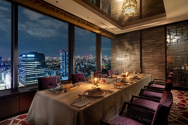 本格フランス料理をベースに素材の風味を引き立てるイタリア料理も加わり、魅力ある伊仏料理を提供します。“ART&RICH”をデザインコンセプトとし、気品のあるボルドーカラーを基調としたフォーマルで華やかな店内。眺望をお楽しみいただける窓側席「エクラ」、プライベート感のあるソファー席「セレニテ」、お祝いごとや接待などの大切な方を招いた会食に最適な個室「SALA」からなるお席は、すべてゆとりをもって配席されており、都心の眺望をご覧になりながら上質なおもてなしと共に贅沢なひとときをお楽しみいただけます。