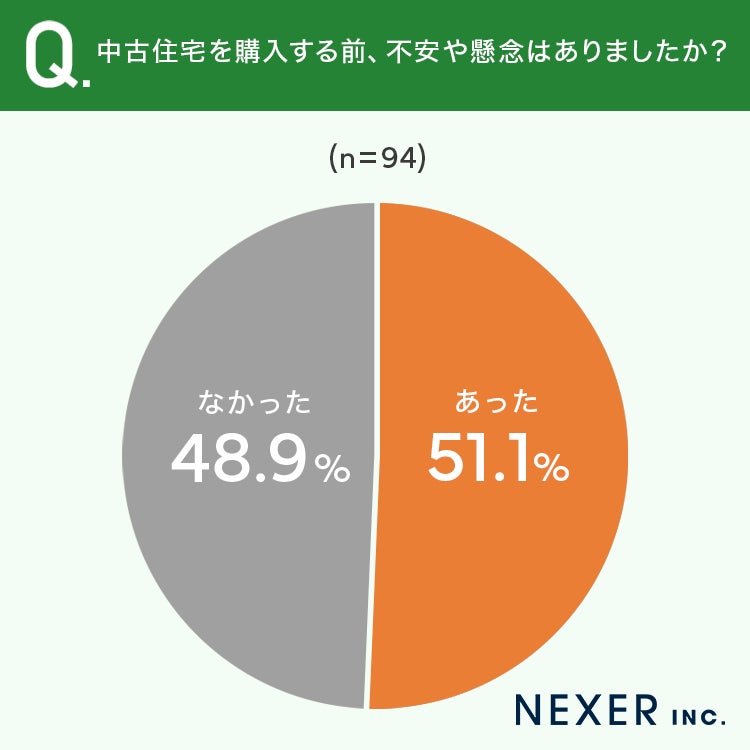 ■51.1%が、中古住宅の購入前に「不安や懸念があった」と回答