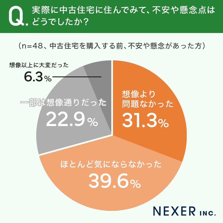 実際に中古住宅に住んでみて、購入前に感じていた不安や懸念がどうだったかを聞いてみました。