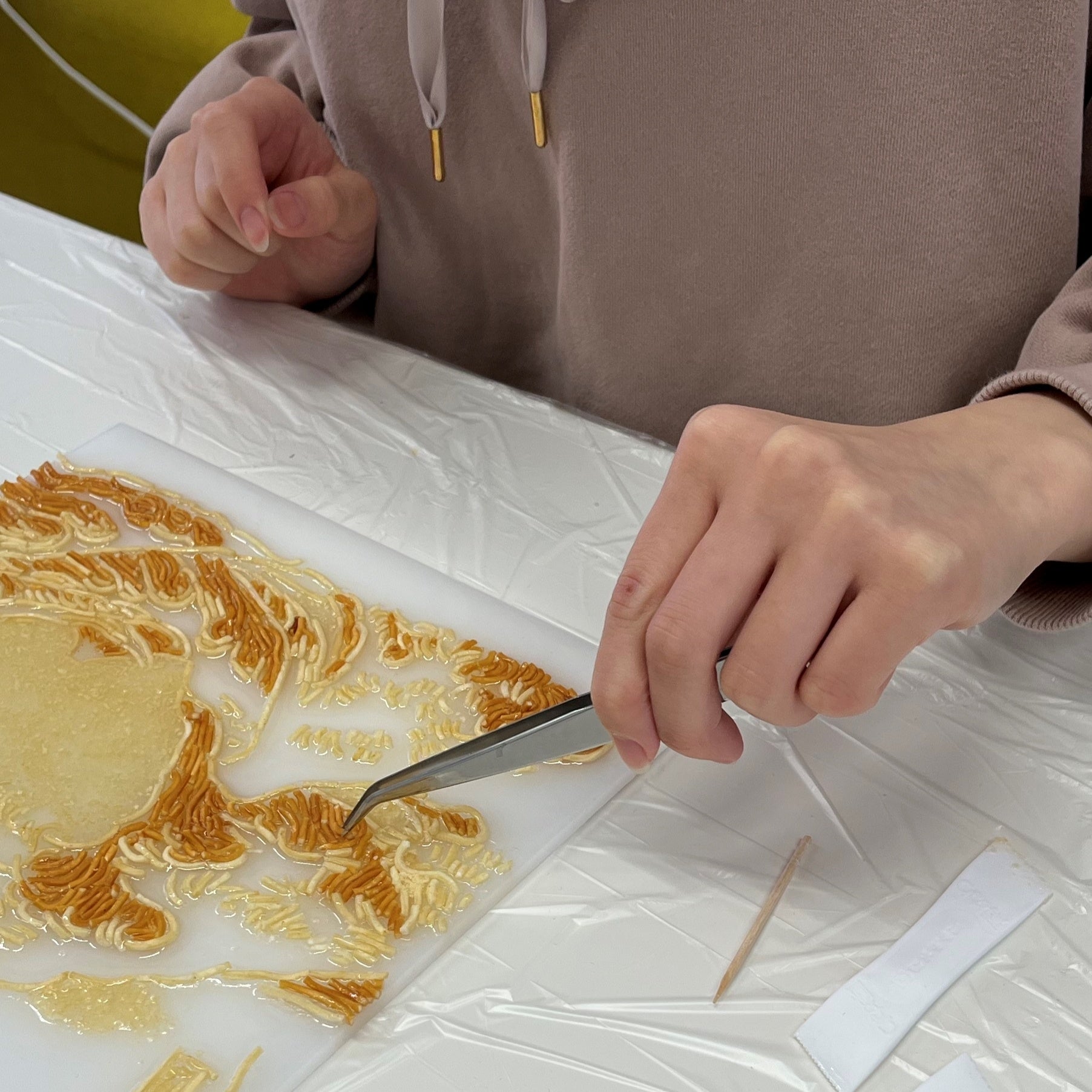 おやつカンパニー×女子美術大学×パルコによる産学共同研究「食とアートのコラボレーション」出張麺画展in渋谷PARCO〜ベビースターでつくる日本画〜