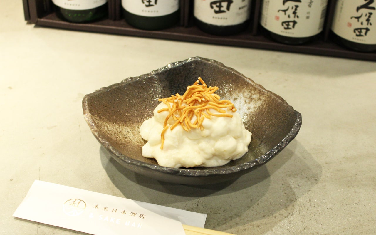 ポテトサラダに久保田の酒粕を入れ、ふくよかな旨味を生み出し、ベビースターを入れてパリポリな食感を増加!
