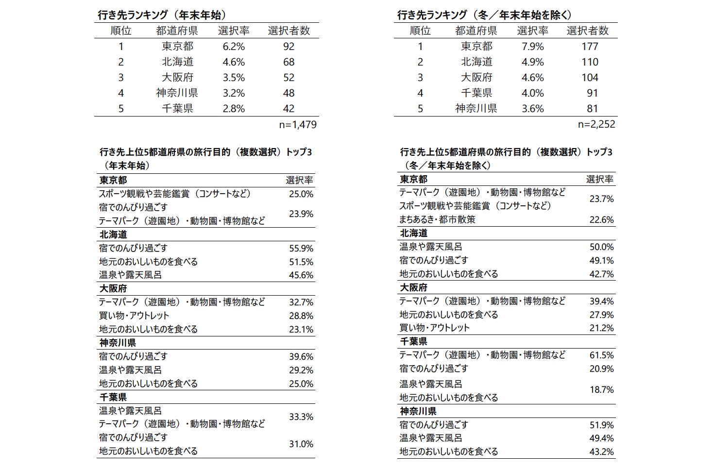 『国内宿泊旅行ニーズ調査 2023~2024冬』 /年末年始の旅行先1位は、「スポーツ観戦や芸能鑑賞(コンサートなど)」を目的とした東京都
