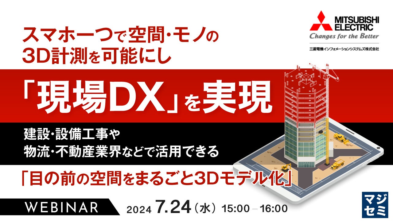 マジセミ株式会社は『建設・設備工事や物流・不動産業界などで活用できる「目の前の空間をまるごと3Dモデル化」』というテーマのウェビナーを開催します。