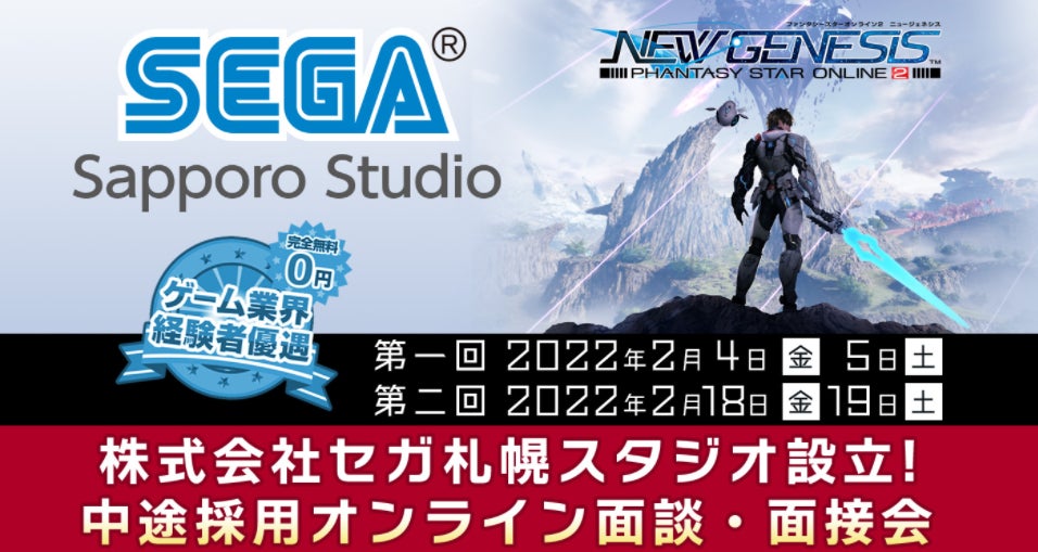 【ゲーム業界】新スタジオの中枢を担うクリエイターを募集!「セガ札幌スタジオ中途採用オンライン面談&面接会」開催