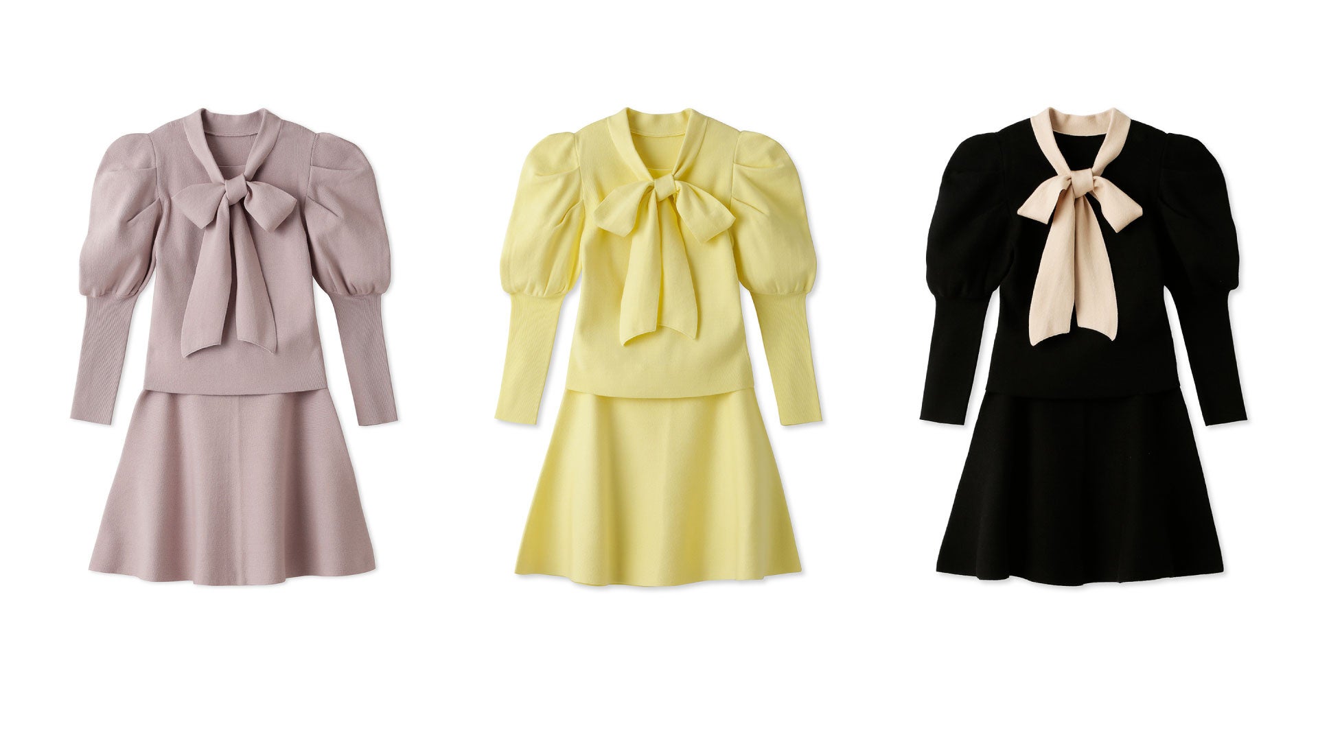 人気のデザインをアップデートしたニットトップスとスカートのセットアップと、