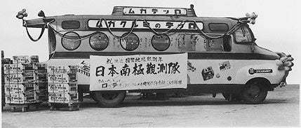 1956年10月の第1次南極地域観測隊へ贈呈したガムを今回再現(写真左)と当時ガムを運搬した車