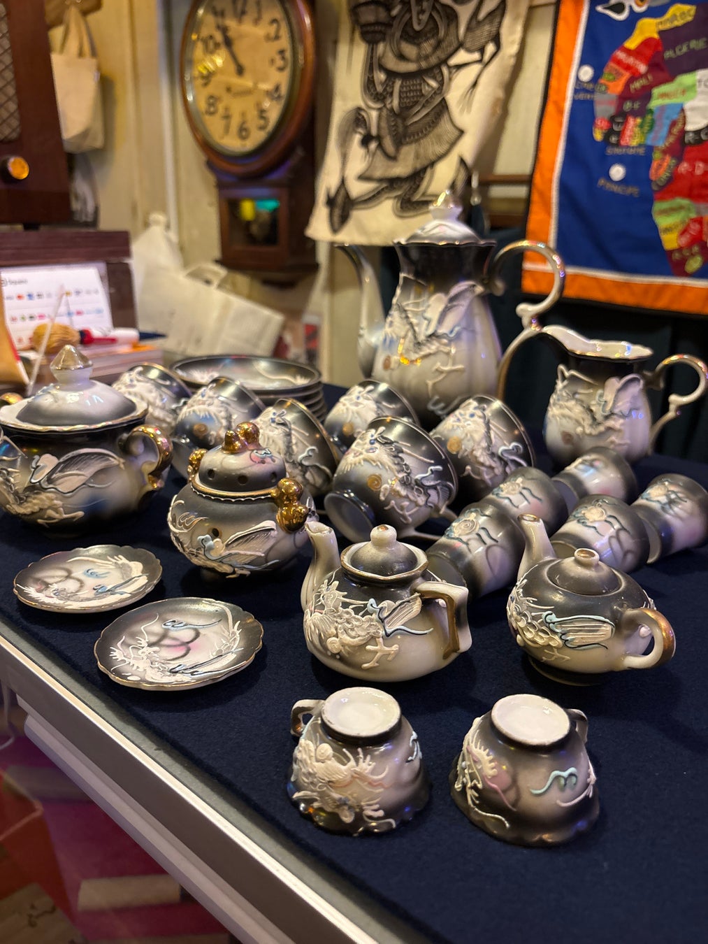1960年代に日本の陶器メーカーが輸出用に作った洋食器セットです。ドラゴンの模様と色合いが最高にカッコいいです!