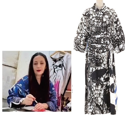 ■(画像左)絞りシャツカラーワンピース(絹100%)
