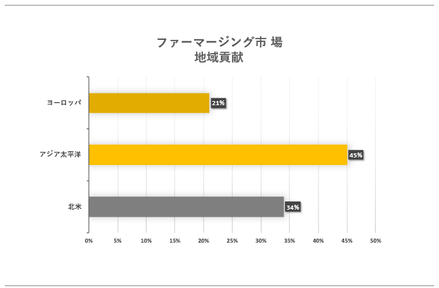問題:アジア太平洋地域がファーマージング市場で最も有利な機会を提供すると予想される理由は何ですか?日本のファーマージング市場の動向は何ですか?
