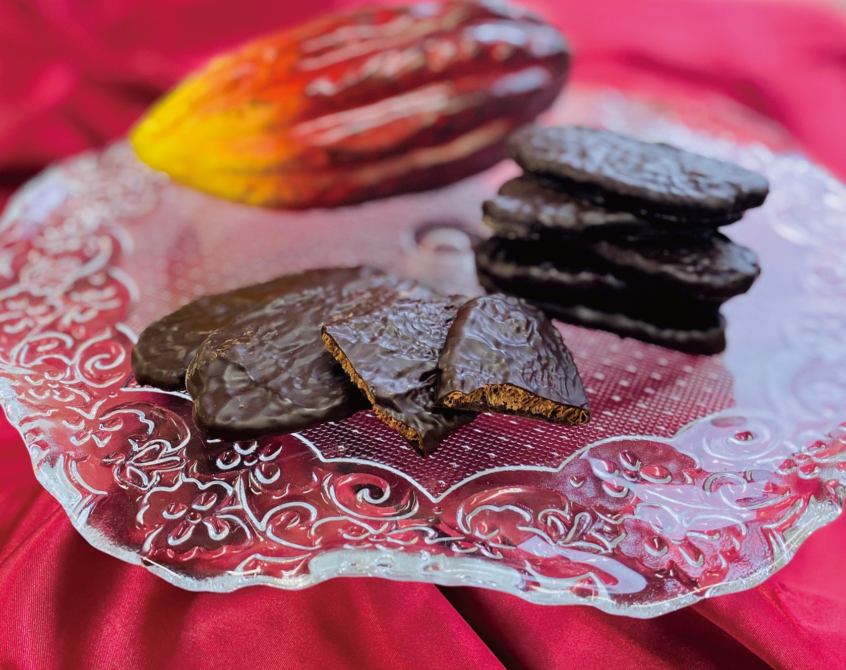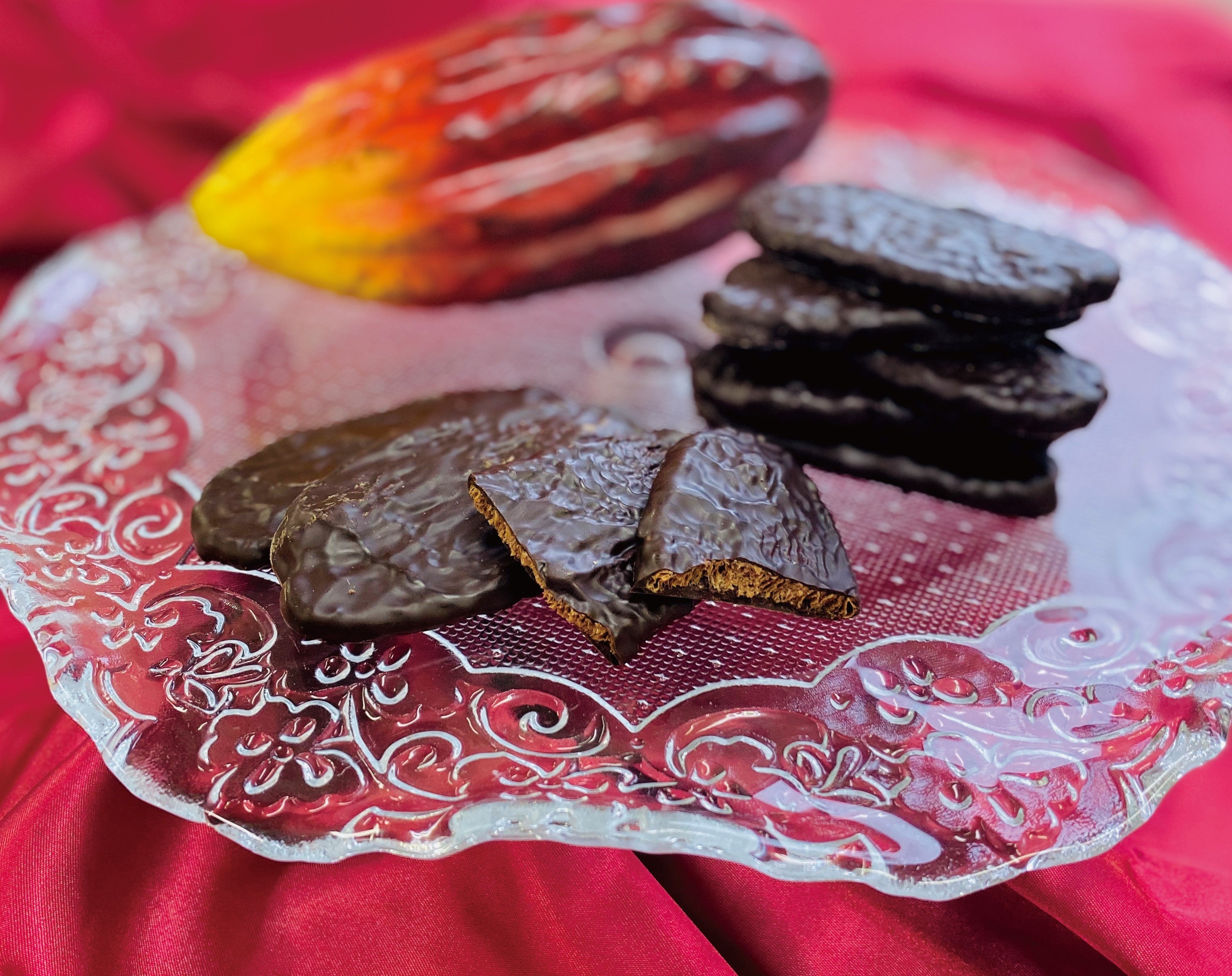 ➀サクサクに焼き上げたチョコレートミルフィーユをなめらかチョコレートでコーティング。濃厚なチョコレートの味わいと香りが口いっぱいに広がります。