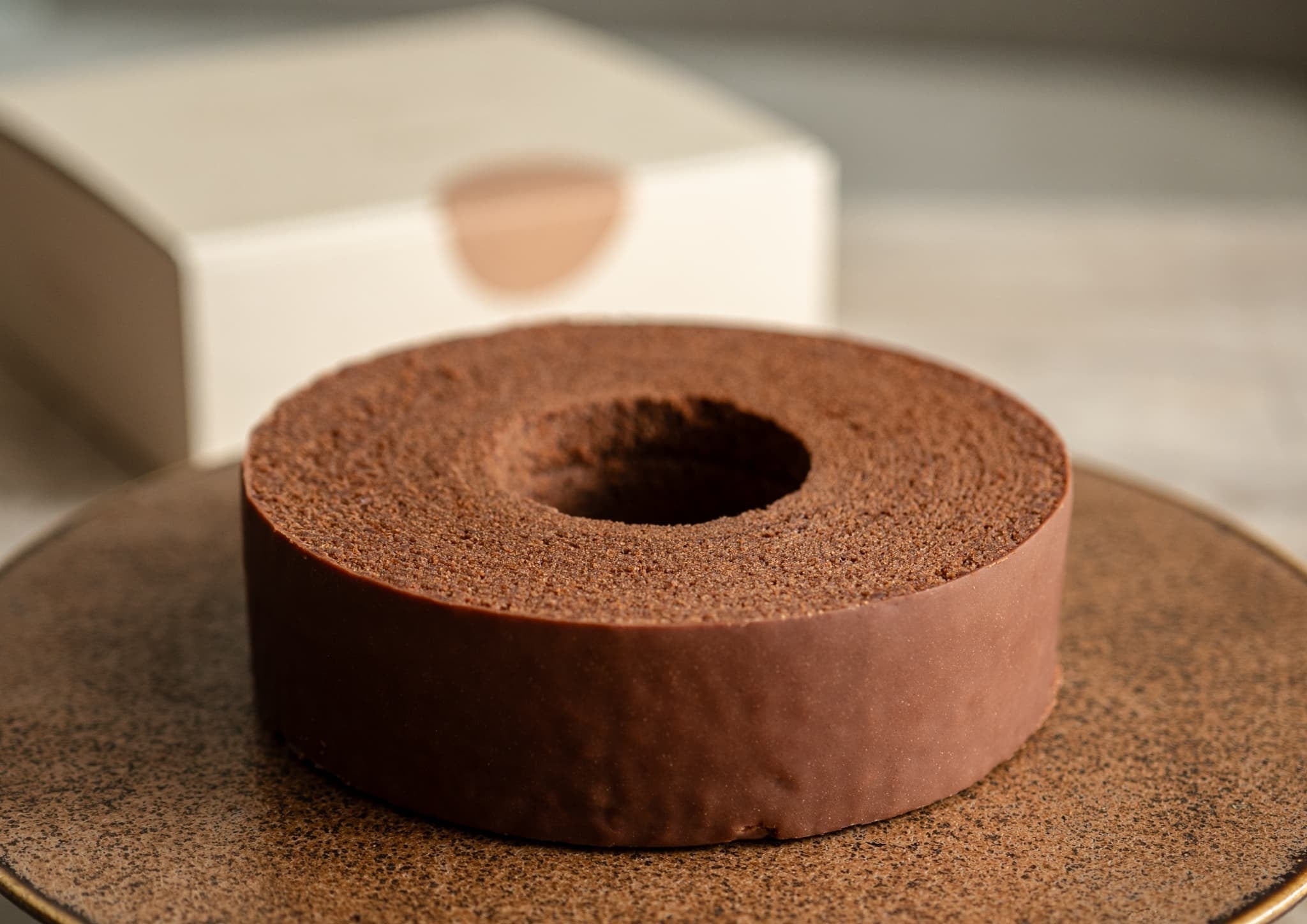 クラフトチョコレートを使用した力強いカカオの風味が特徴です。また、バウムクーヘンの生地に使用するメレンゲにはコンニャクパウダーを配合し、たくさんチョコレートを入れてもふんわりとした食感を楽しめるように工夫しました。