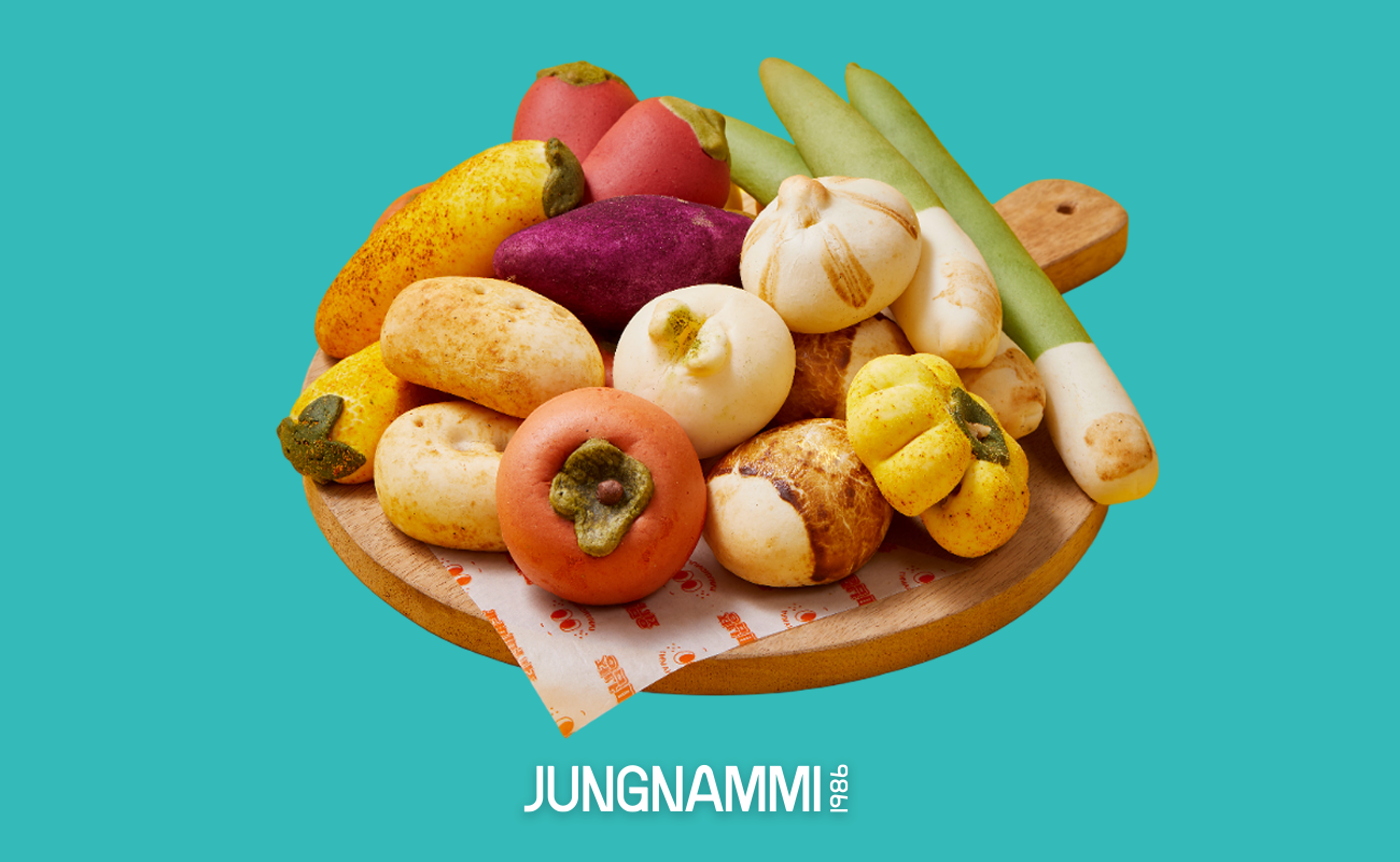 韓国産のもち米を使用したパン生地に、韓国の特産農作物を餡にたっぷり包み込みました。人気のじゃがいもパン(カムジャパン)や、さつまいもパン(こぐまパン)など、本物そっくりな見た目の野菜パンが全10種類、バリエーション豊かなラインナップ!かわいいビジュアルのもっちり野菜パンで韓国気分をお楽しみください。