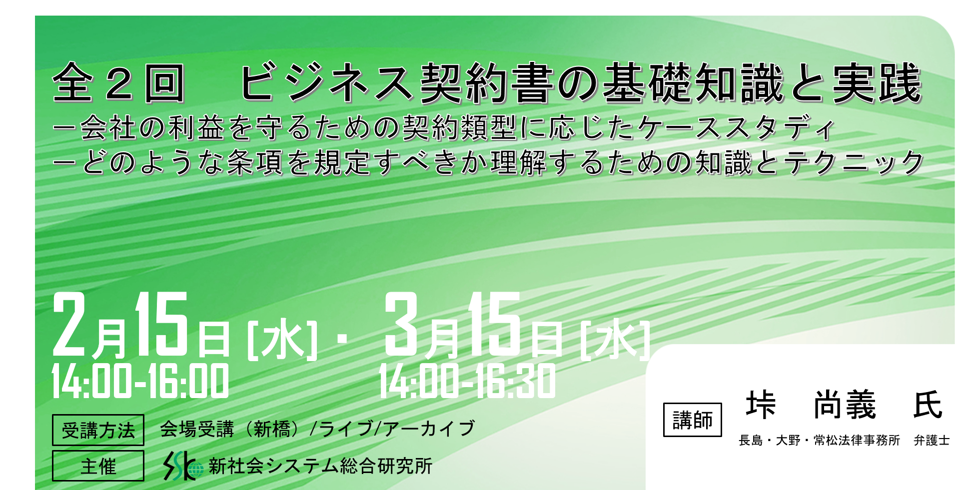 ビジネスセミナーを企画開催する新社会システム総合研究所(SSK)は、下記セミナーを開催します。