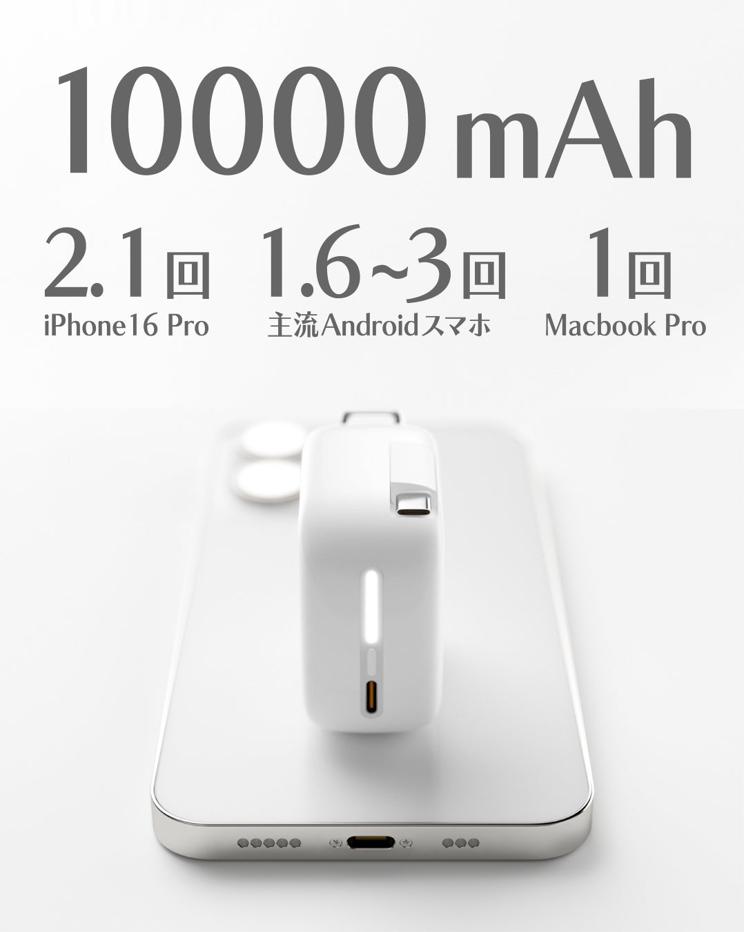 10,000mAhのフル充電も、わずか約1.2時間で完了します。