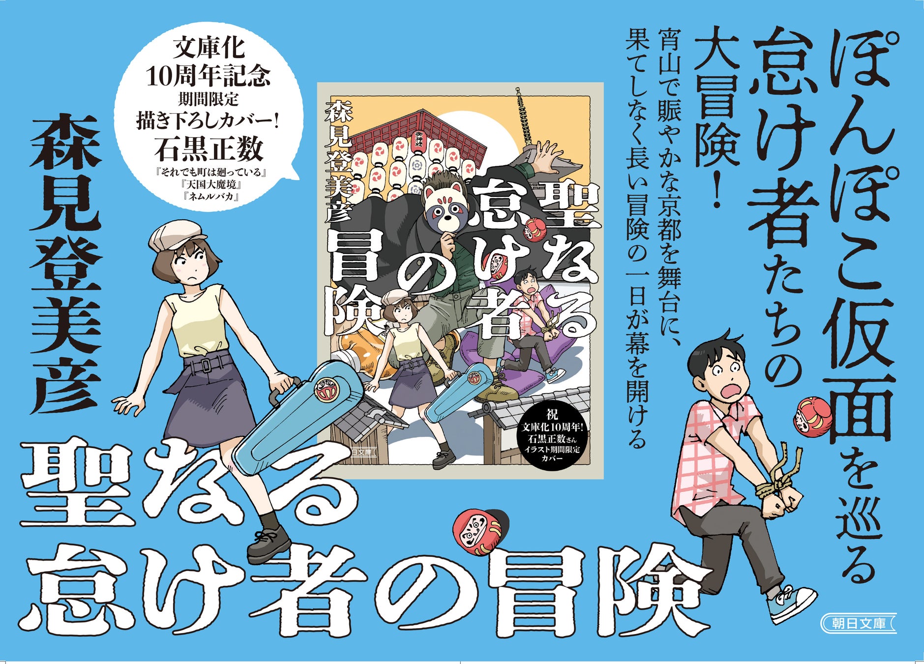 2016年に文庫判が刊行された森見登美彦さんの人気小説『聖なる怠け者の冒険』の、文庫化10周年を記念し、漫画家・石黒正数さんによる描き下ろしイラストを使用した特別カバー版を、2026年4月9日頃より全国書店にて販売いたします。