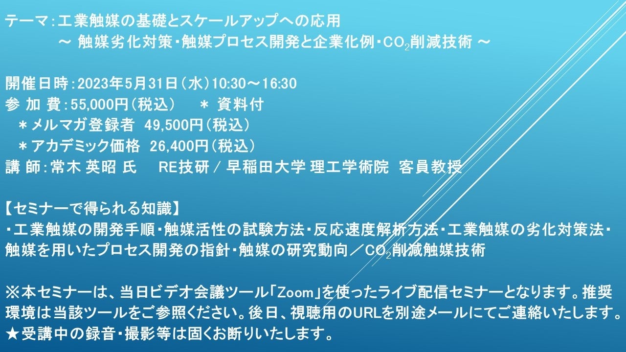 【ライブ配信セミナー】工業触媒の基礎とスケールアップへの応用 ~ 触媒劣化対策・触媒プロセス開発と企業化例・CO2削減技術 ~ 5月31日(水)開催 主催:(株)シーエムシー・リサーチ
