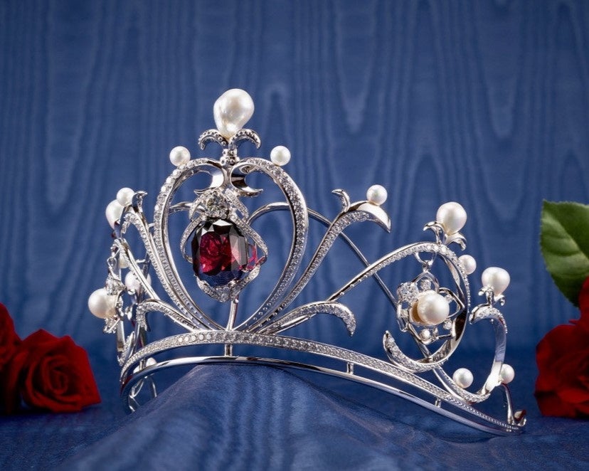 ガーネットやパール、ダイヤモンドを散りばめ、王妃マリー・アントワネットの高貴な美しさを表現しています。