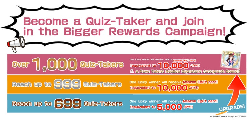 | 1,000人突破 | 希望タレントの「複製サイン入り色紙」、 Amazonギフトコード¥10,000(JPY)分 |