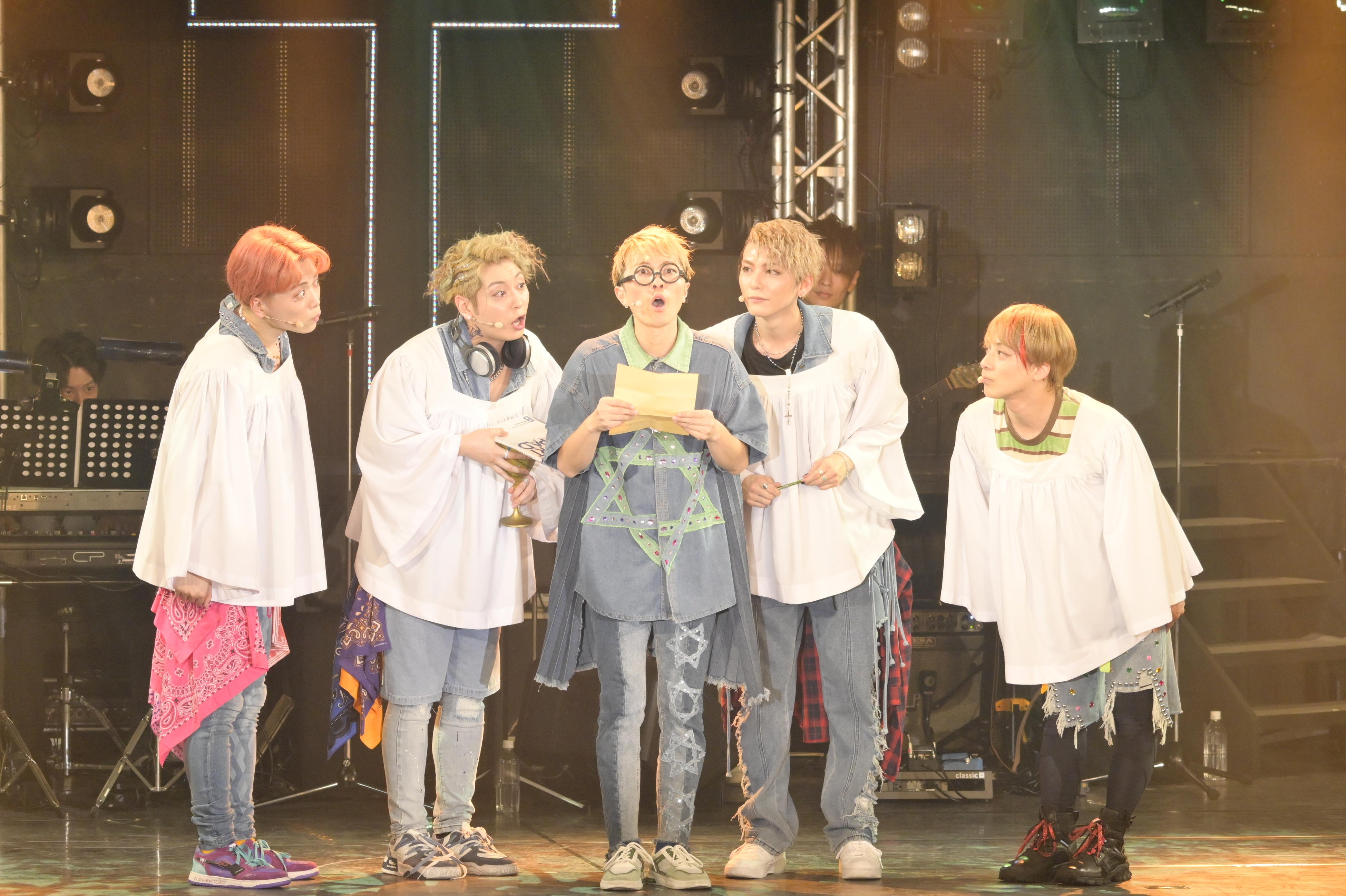 キャストは3チームあり、この日観たのはTeam SPARK。名前のごとく、それぞれが弾けていて、ライブ上手が集まった印象。ちょっとしたハプニングも即、笑いに変えるのはお見事。今回、初参加の鍵本輝(マシュー役)はフレッシュで真摯。回を重ねてより自由になれるだろう。2019・2021年から同じ役を続投する米原幸佑(フアン役)、和田泰右(アブラハム役)、川原一馬(ルーク役)は既に身体に入っているのか、パンチが効いた役作り。2011年にアブラハム役だった若松渓太がマーク役になり、マシューLOVEが新鮮で愛らしかった。この5人はソロもイカしているが、ハーモニーも美しく、耳も目も満たされることだろう。