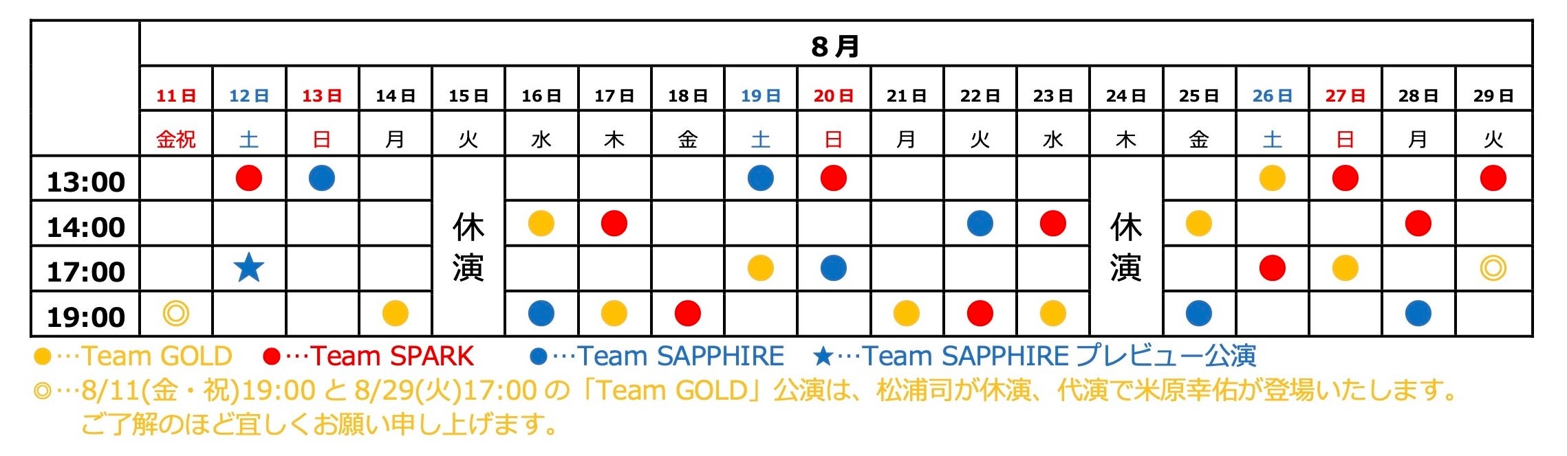8月13日(日) 13時【Team SAPPHIRE】 ゲスト:玉野和紀、東山義久