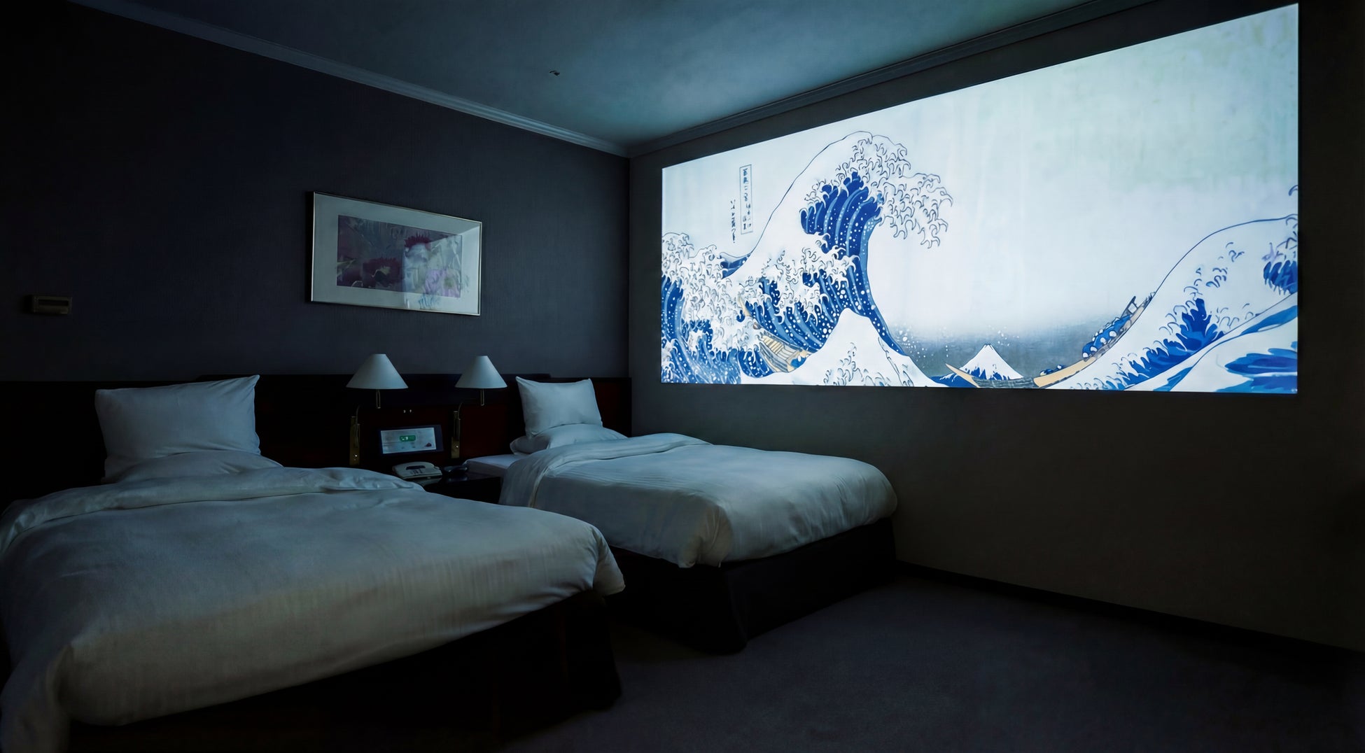 モバイルプロジェクター「Nebulla CapsuleⅡ」の客室内設置(浮世絵のデジタルアートを鑑賞できます。)
