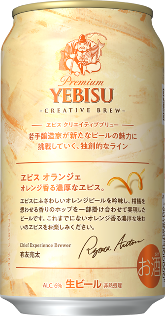 「CREATIVE BREW」の第2弾となる本商品は、ヱビスブランド130年以上の歴史の中で初めて「オレンジピール」に着目しました。徹底的に吟味したオレンジピールに、柑橘のような香りのホップを一部掛け合わせて実現した、これまでにない、オレンジ香る濃厚な味わいのヱビスです。ヱビスの香りとコクをより一層増幅させた、新たなおいしさのヱビスで、幸せなひとときを彩ります。