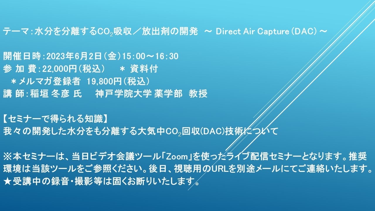 【ライブ配信セミナー】水分を分離するCO2吸収/放出剤の開発 ~ Direct Air Capture (DAC) ~ 6月2日(金)開催 主催:(株)シーエムシー・リサーチ