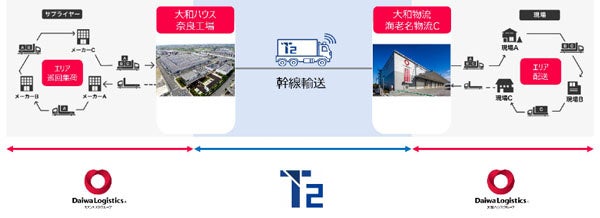 こうした状況を受けてT2は、物流危機への対応として自動運転トラックによる幹線輸送の実現を目指しており、大和物流はドライバー不足の代替手段としての可能性に着目し、2023年にT2へ出資しました。そしてこの度、大和物流とT2は、自動運転トラックによる住宅建材輸送において輸送品質の確保と安定的な輸送体制の構築を目的に、大和物流が大和ハウス工業に提供している調達物流(※2)の幹線輸送にて実証実験を実施することとしました。