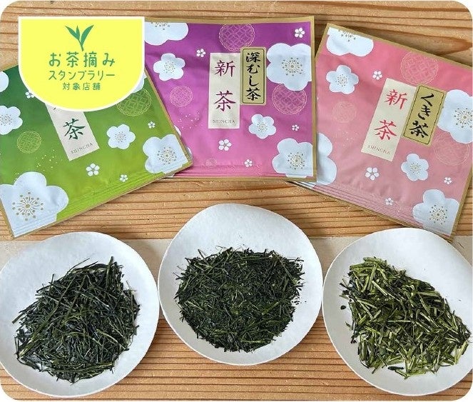期間中、対象店舗にて、茶葉やスイーツ、茶器など1レシート税込1,000円以上お買上げいただくごとに、茶葉をデザインしたスタンプを1つ押印します。この茶葉を異なる店舗で3つ摘んでいただいた各日先着20名さまに、全国各地のお茶屋さんのプレミアムな茶葉の中からおひとつをランダムでプレゼントいたします。