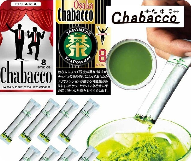 タバコのような箱に入ったスティックタイプの粉末茶は、“世の中を、茶化そう”をコンセプトに誕生。大阪の活気や文化を彷彿させるパッケージに、枚方の製茶問屋「茶通仙多田製茶」八代目 多田雅典さんが合組した特製ブレンド茶をセット。