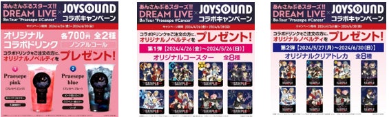 全国の対象カラオケ店舗では、「あんさんぶるスターズ!!DREAM LIVE -8th Tour "Praesepe #Cancer"-」をイメージしたオリジナルコラボドリンク(全2種)を展開!第1弾[4月26日(金)~5月26日(日)]の期間中はオリジナルコースター(全8種)、第2弾[5月27日(月)~6月30日(日)]の期間中はオリジナルクリアトレカ(全8種)を、1点のご注文につき1枚、特典としてプレゼントします。