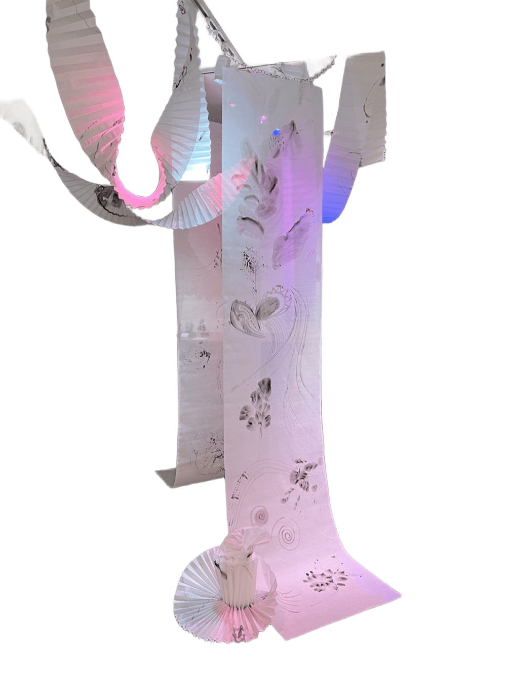 柔らかくて、しなやか、風になびき光を通す布のインスタレーションは、書を五感で楽しむことができます。