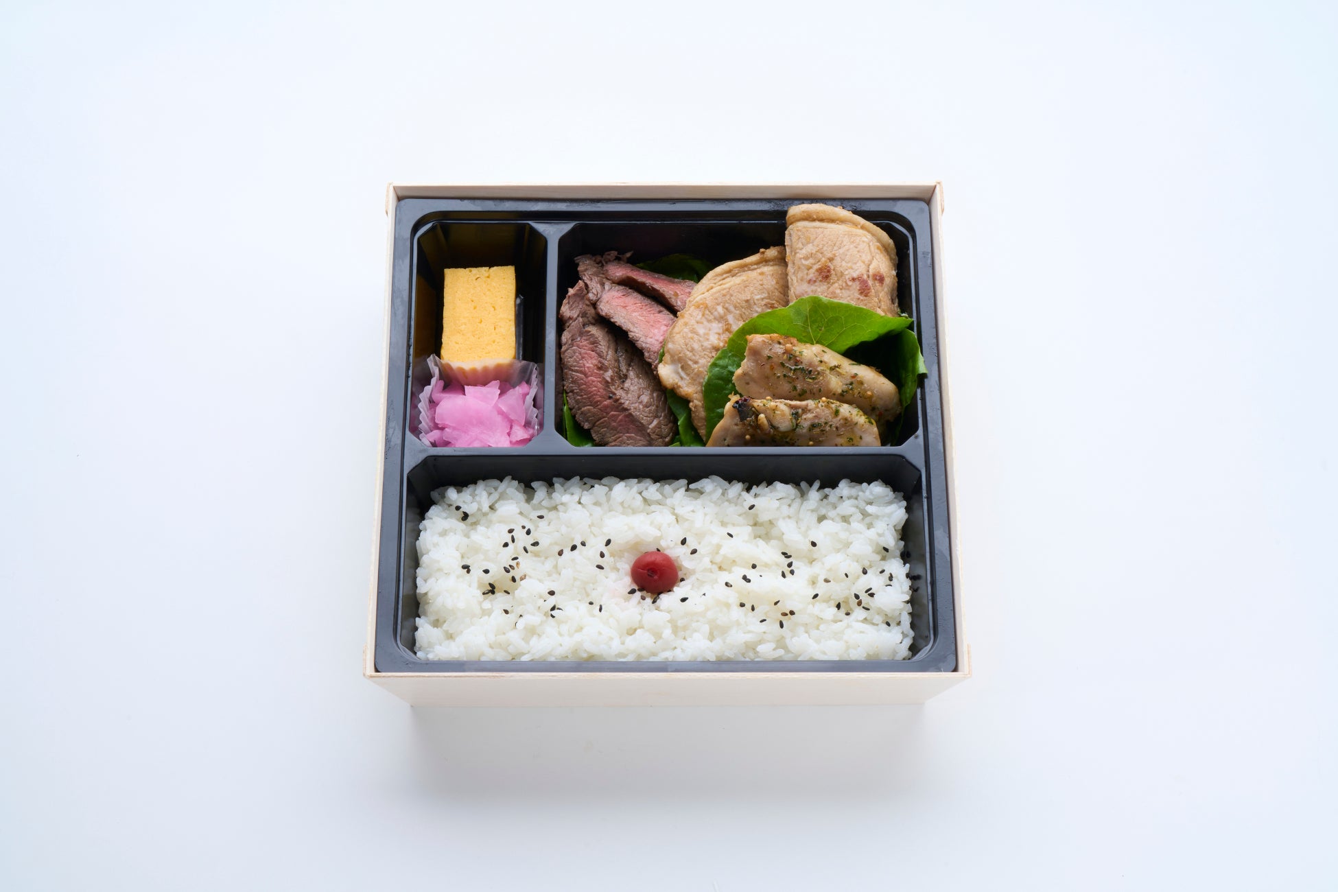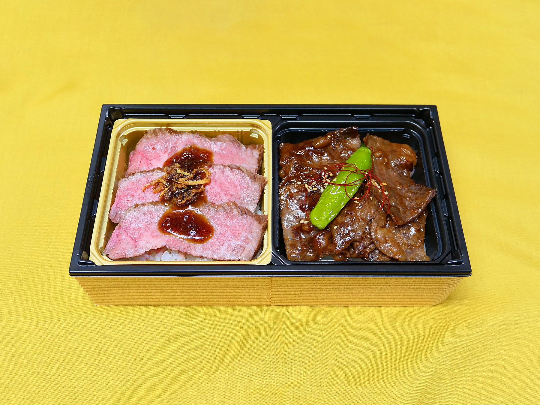 国産牛のステーキと焼肉を一度に味わえる贅沢なお弁当です!