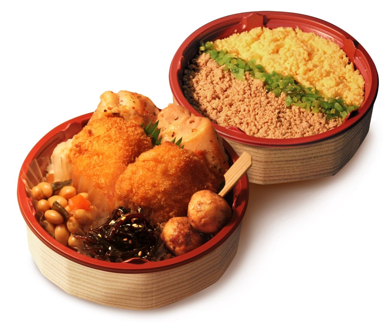 日山自慢の牛、豚、鶏肉を一度に楽しめる限定弁当です。