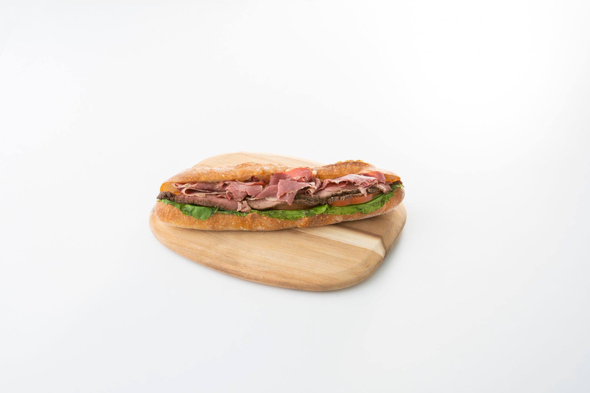 PAUL自慢のフランスパンにローストビーフとパストラミビーフをサンドしました。