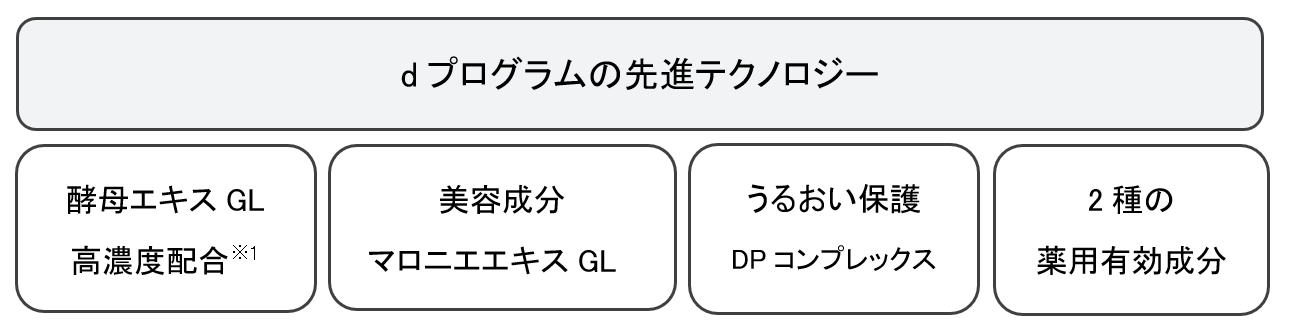 ◆酵母エキスGL 高濃度配合※1 (酵母エキス、グリセリン) ※1 dプログラム ローション・エマルジョン比