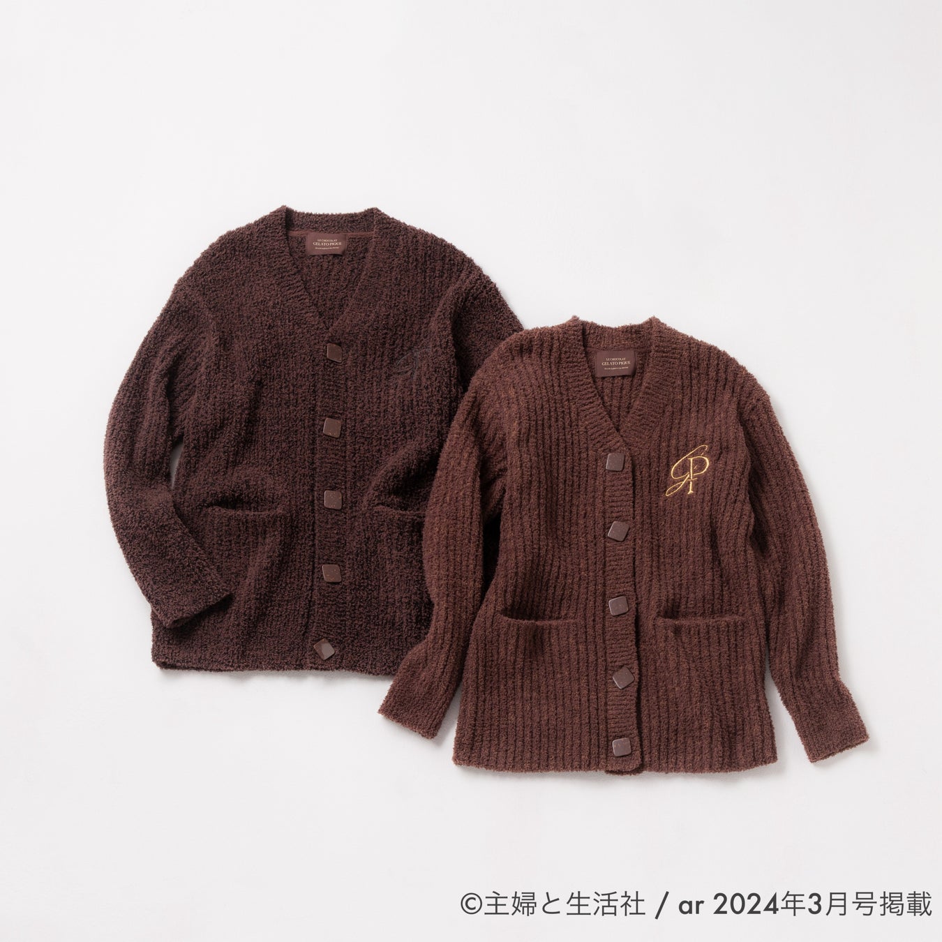 高級チョコレートをイメージしてカーディガンの胸元にはゴールド刺繍をあしらいました。