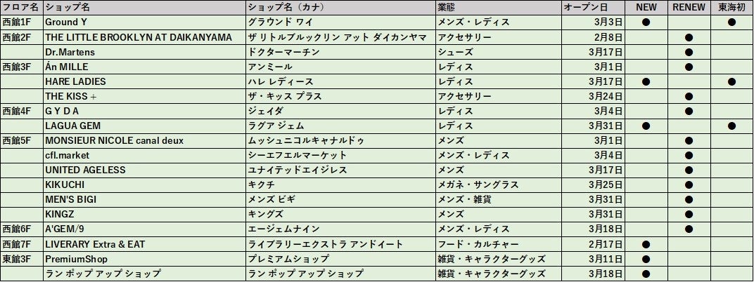 4月以降オープンするショップの続報は今後発信いたしますので、ぜひご期待ください。