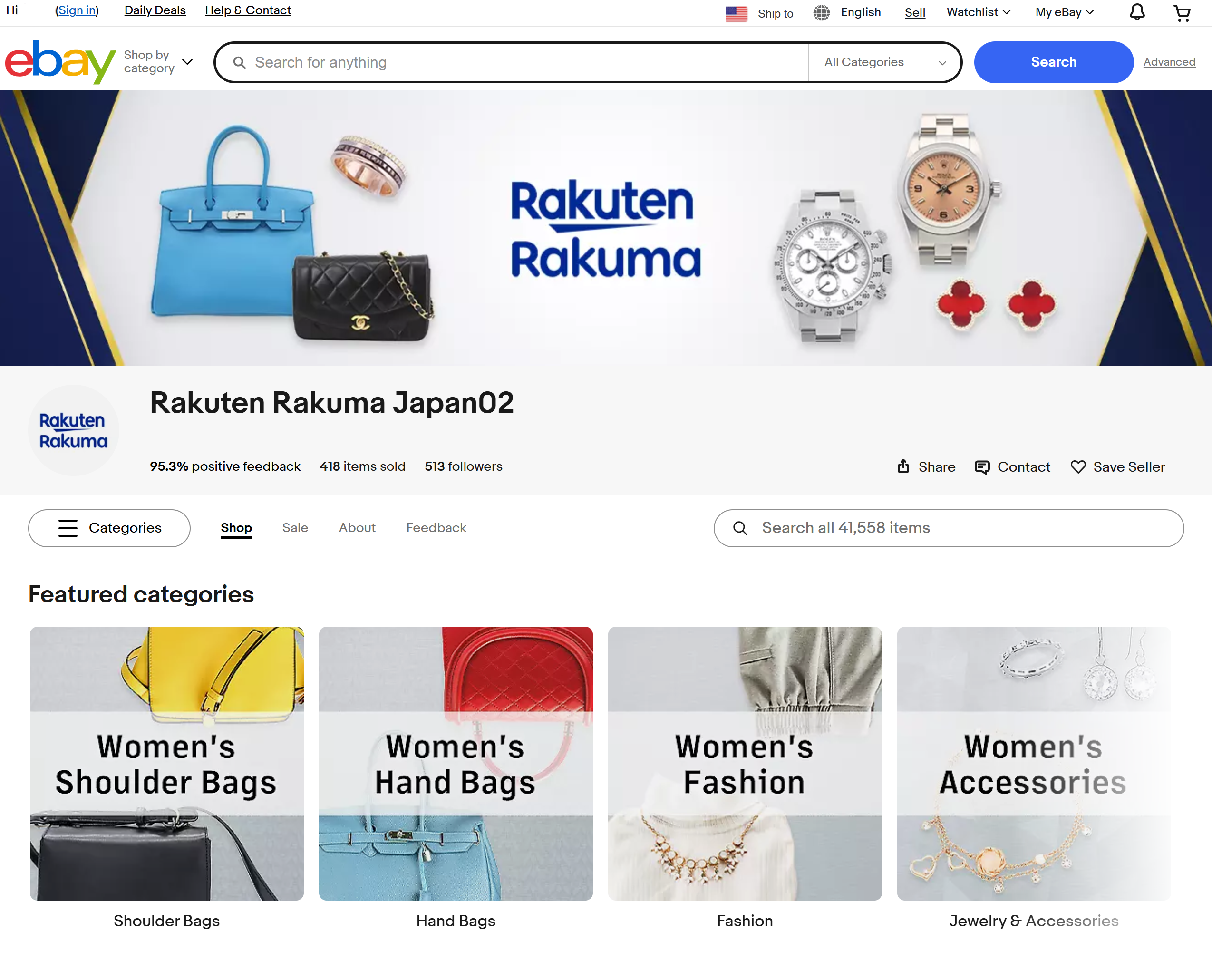 ・連携先の「eBayストア」(USサイト)URL: https://www.ebay.com/str/rakutenrakumajapan02