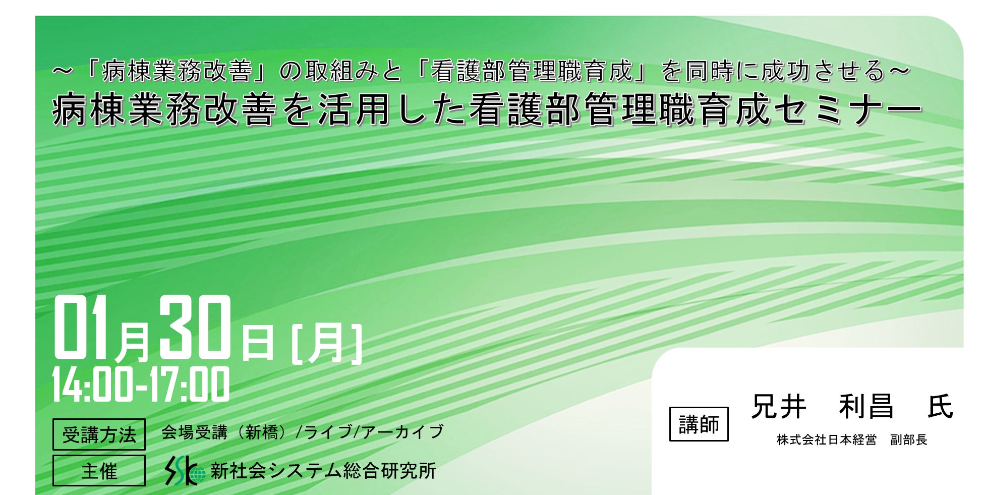 「看護部管理職育成セミナー」と題して、株式会社日本経営 兄井 利昌氏のセミナーを2023年1月30日(月)に開催!!