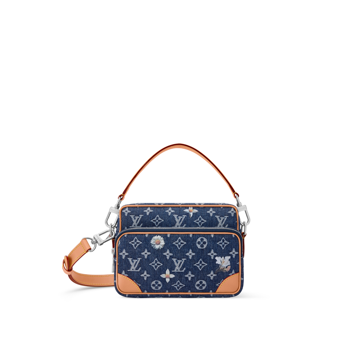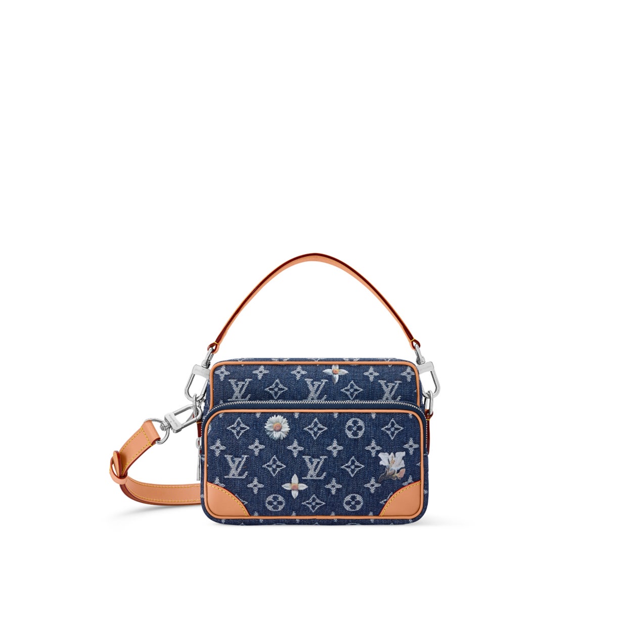 ホワイトとインディゴのツートーンカラーでモノグラム·モチーフをデニムに直接織り込んだ、モノグラム·フラワー デニムの力強いシルエットが魅力の「クリストファー MM」。レザーのトリミングと2つのサイドポケットがその大胆なラインを一層引き立て、エクリュカラーのテキスタイルライニングがアクセントを添えます。