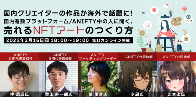 【クリエイター向け】NFTアートを売るためのヒントが満載!2/16(水)セミナー「ANIFTY中の人に聞く、売れるNFTアートのつくり方」