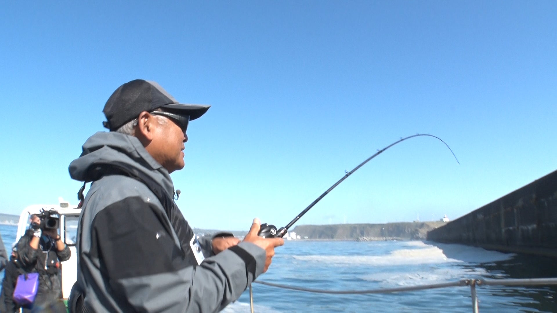 ヒントは、ロックフィッシュ。ボトムを様々なワームで丁寧に攻めていく村つるの2人。フリーフォール、テンションフォール、カーブフォール、その日に合った誘い方を探っていく。