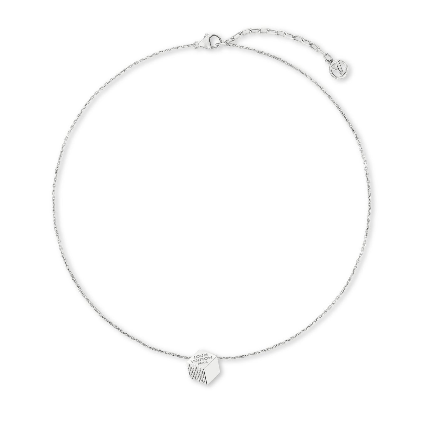 遊び心溢れるエレガンスを演出するスターリングシルバー製の「ネックレス·LV キューブ シルバー」。