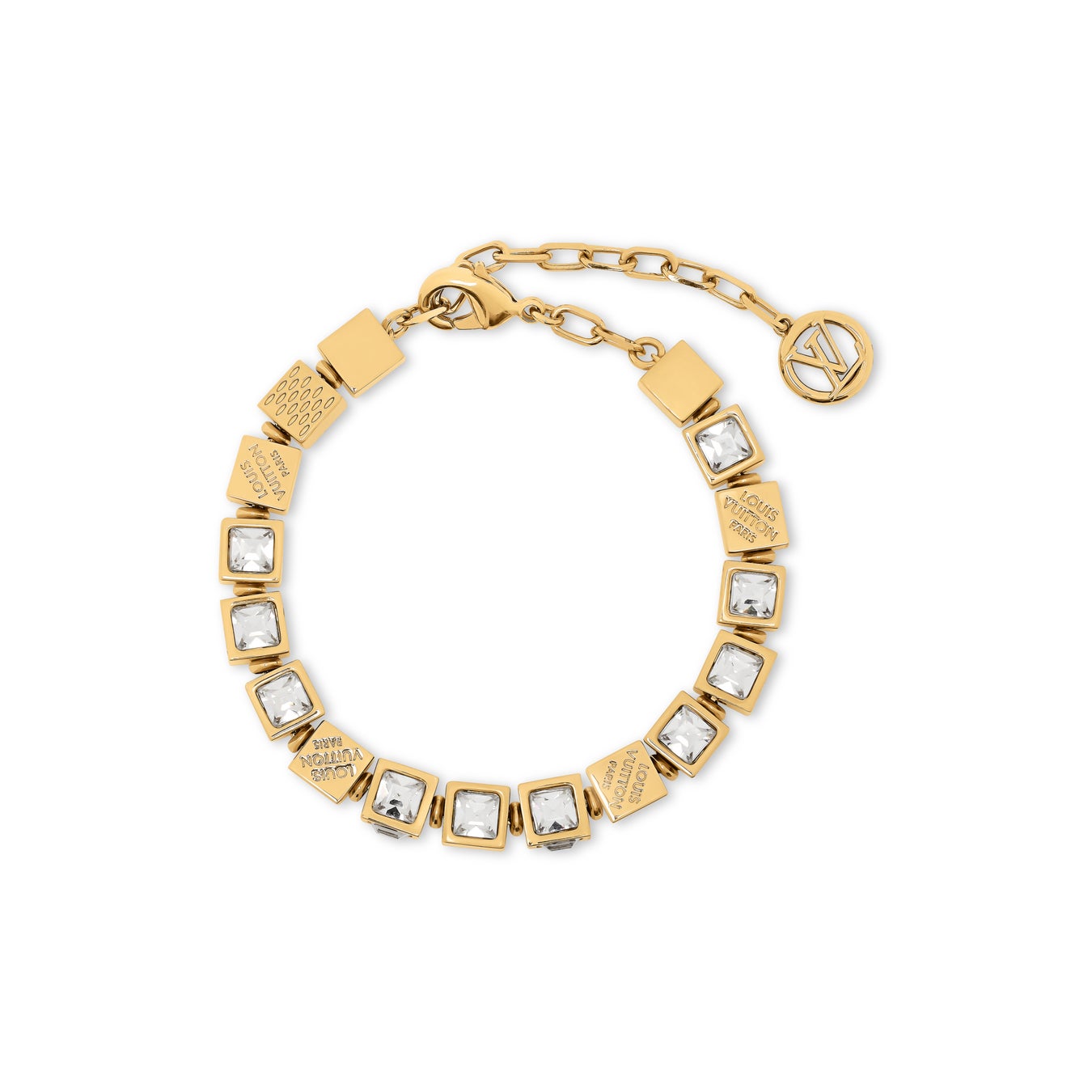 モダンなひねりを加えて再解釈した「LV キューブ」コレクションにアイキャッチーなブレスレットが登場。ダミエのチェッカーボード柄を想起させる彫刻を施した、ゴールドカラーのメタル製キューブをあしらい、きらめくラインストーンと「Louis Vuitton Paris」のシグネチャーがアクセントを添えます。メゾンのクリエイティブな伝統にオマージュを捧げた、エレガントで遊び心溢れるアイテム。